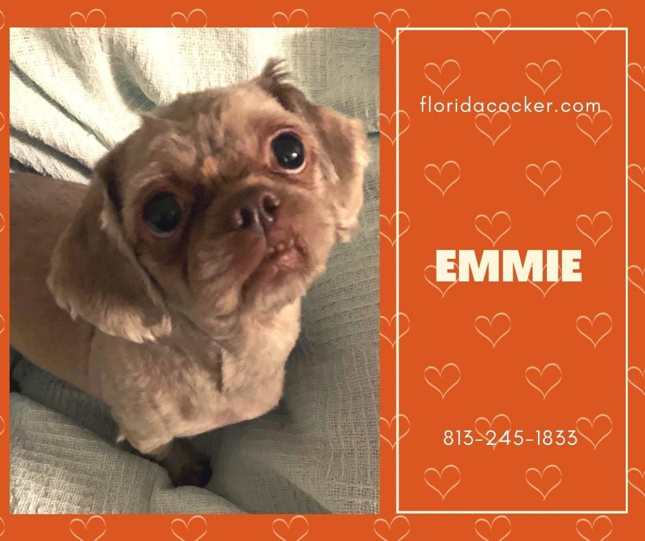 Adoptions – Florida Cocker Spaniel Rescue. For more information, please call 813-245-1833. Potential adopters must have a verifiable veterinary history and should be willing to travel to the Tampa area for adoption once approved. This post will be removed once Emmie is placed.